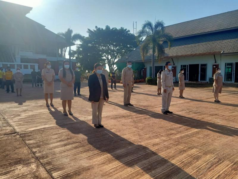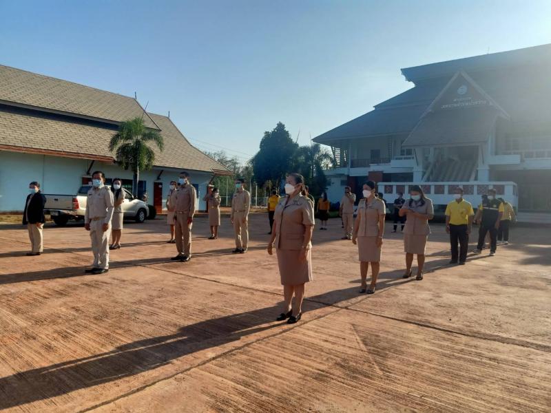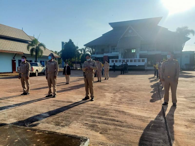 นายวีระ ทุมกิจจะ นายกเทศมนตรีตำบลบัวสว่าง พร้อมคณะบริหาร พนักงานเทศบาล พนักงานครูเทศบาล พนักงานจ้าง เข้าแถวเคารพธงชาติ เช้าวันจันทร์ ที่ 31 มกราคม 2565