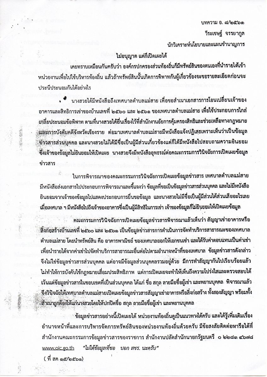 เอกสารเผยแพร่ข้อมูลความรู้เกี่ยวกับพระราชบัญญัติข้อมูลข่าวสาร พ.ศ.2540