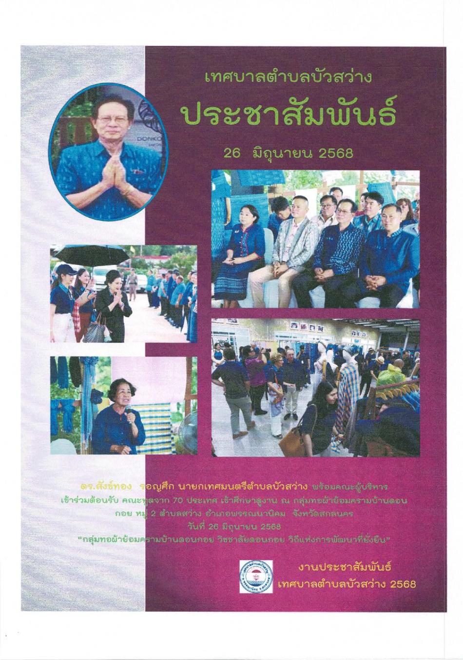 ยินดีต้อนรับ เข้าสู่เว็บไซต์ เทศบาลตำบลบัวสว่าง อำเภอพรรณานิคม จังหวัดสกลนคร