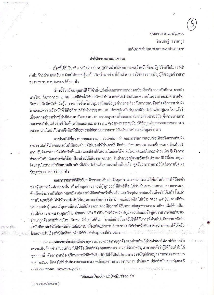 เอกสารเผยแพร่ข้อมูลความรู้เกี่ยวกับพระราชบัญญัติข้อมูลข่าวสาร พ.ศ.2540